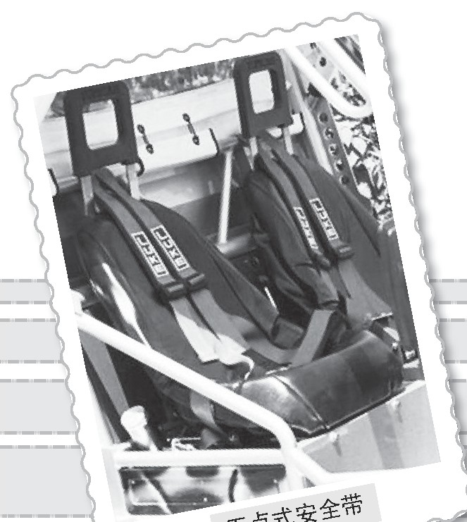 现在坐式安全带的种类越来越多了,在飞机上人们使用两点式安全带,这个就是前面提到过的围绕式安全带;在儿童安全座椅或者一部分赛车上,为了提高安全级别,人们装配了五点式安全带;在飞速行驶的赛车上,还有六点式安全带呢。