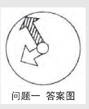 问题一:石刻图案中,每个图案的构成都是相同的,只有箭头的位置不同,通过对比分析箭头的位置变化我们可以看出,从第一个图案开始,短箭头每次逆时针旋转60°,长箭头每次顺时针旋转120°,由此王小泡推断出了第三幅图箭头的位置。