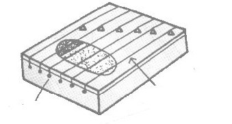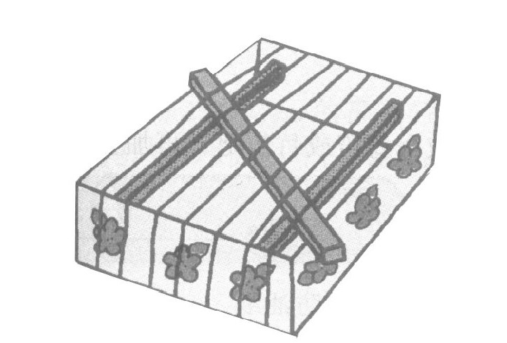 (3)将两支与盒子等长的板条插入盒底两侧,起支撑作用,防止盒子变形。