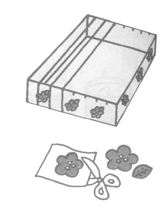 (2)按顺序在每一个小沟上嵌入橡皮圈。用彩纸在盒子的外侧做上自己喜欢的图案。