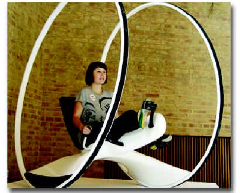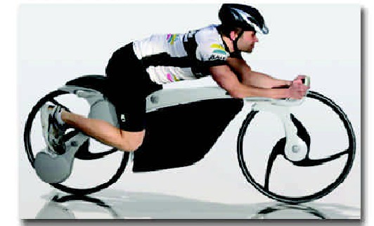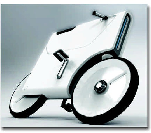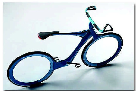 这款自行车车轮没有轮辐,这样可以最大限度地减少风阻;它的轮胎很难刺破,它的链条被隐藏于车体之内,它的框架体现了最简约化的特点。在自行车上,还有一个太阳能电池和一个指纹识别设备。太阳能电池可以为自行车提供动力,指纹识别设备主要是用于防盗,只有自行车主人才可以使用它。在自行车手把里,还有一个微型电脑,它可以根据骑车者脚踩踏板的次数来计算出他所消耗的卡路里。