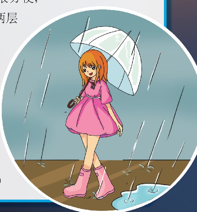 最近我们这边时常下雨,于是前几天我专门去买了一把黑色的大伞,可撑着它经常会遮挡视线,不是很方便所以我就想发明一种晴雨伞。这种伞有两层贴合的伞面,一层为遮光层,一层为透明层。而且,伞柄上有一个醒目的红色按钮,晴天时按下红色按钮就能把遮光层打开,雨天时则可把遮光层收掉,只露出透明层。这样一来,下雨天就再也不会被雨伞遮挡视线了,而且晴天还能遮阳。