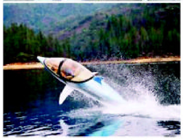 一艘仿海豚外形的船日前在英国伦敦船展上亮相,它能从水中跳出并飞到3米高的空中,还能潜入0.6米深的水中长达2 0秒。船内驾驶员和乘客座位设计有四处安全带,以保护其不受潜水和跳跃的影响。海豚船的首鳍还装有隐蔽的通气管,能为船内提供氧气。
