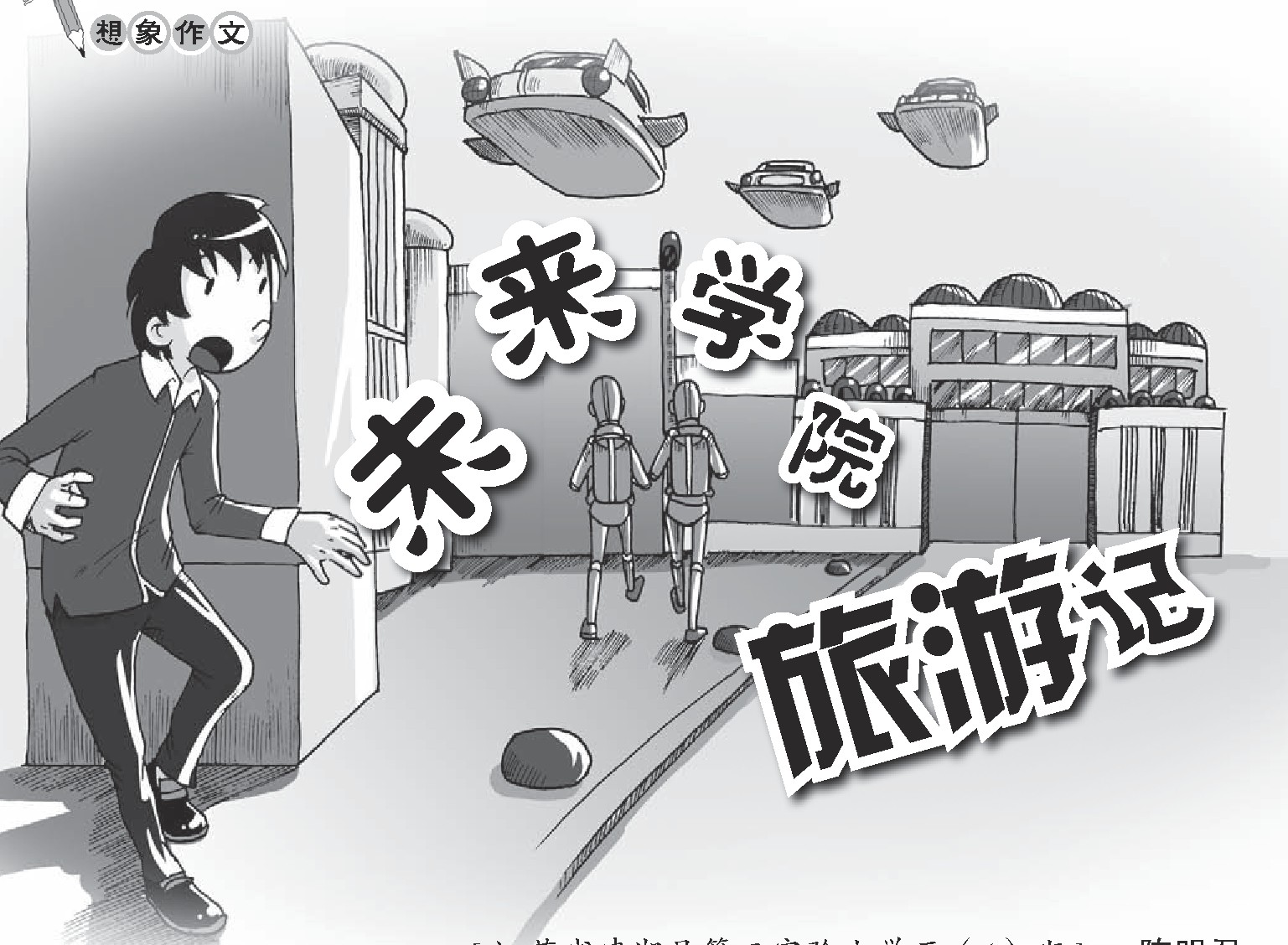 “学院?”我很惊讶。进入学院,首先映入眼帘的是两幢大楼和一个面积很大的操场。操场上有许多球场和各种健身器材。老师向我介绍说:“操场是学生们进行户外活动的地方,两幢大楼,一幢是教学楼,一幢是科技体验馆。在学院里面是很自由的,你可以自己去体验,祝你愉快,再见!”