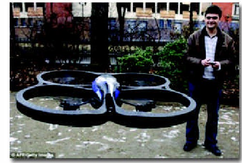 这款无人机被称为“AR无人机”,外形似飞碟,可以由手机控制。微型无人机能以每小时17.7千米的速度飞行,最大航程为50米。