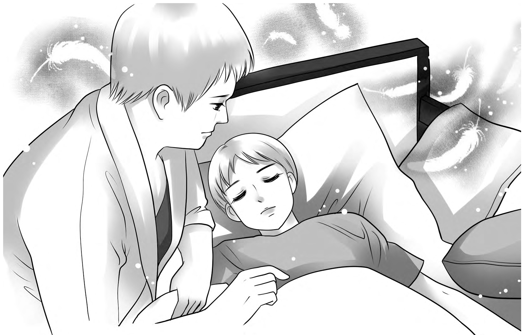 一阵短暂的眩晕过后,林妈妈站在了一扇金色的门面前,门上有神使赫尔墨斯的浮雕,眼神悲悯。林妈妈推开门站在了一片绿茵场上,这里有两队学生在举行足球比赛。天气晴朗,男孩们跑得飞快,球衣被风吹得鼓起来。穿白色球衣的13号一脚大力抽射,球被稳稳送进了对手的门里,其余的队友们欢呼着将13号拥在中间。成为焦点的13号是个害羞的男孩子,他有些不好意思,低头笑出了两颗小虎牙。