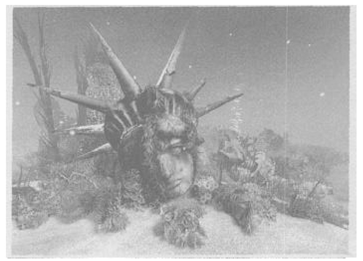 透过舷窗,大奇向外望去:河底的石头是那样黑,河底的沙土上长满—不是水草,而是厚厚一层黑色的污垢!
