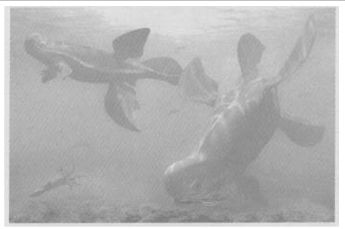 爸爸一推操纵杆,潜艇加速向上游行驶。一路上河水的颜色越来越深,到后来只能看清几米远的地方了。