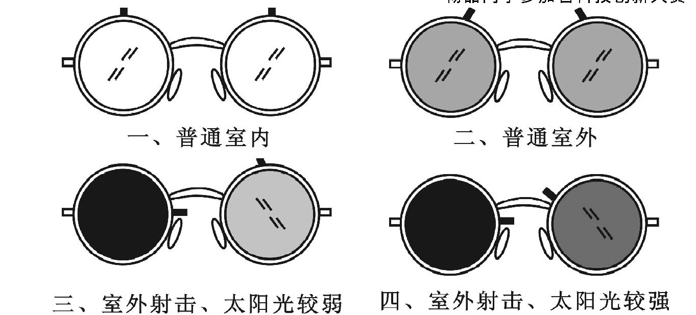 项目目的:为室外射击、射箭运动员提供一种可以适应任何天气、左右任意遮盖的太阳镜。