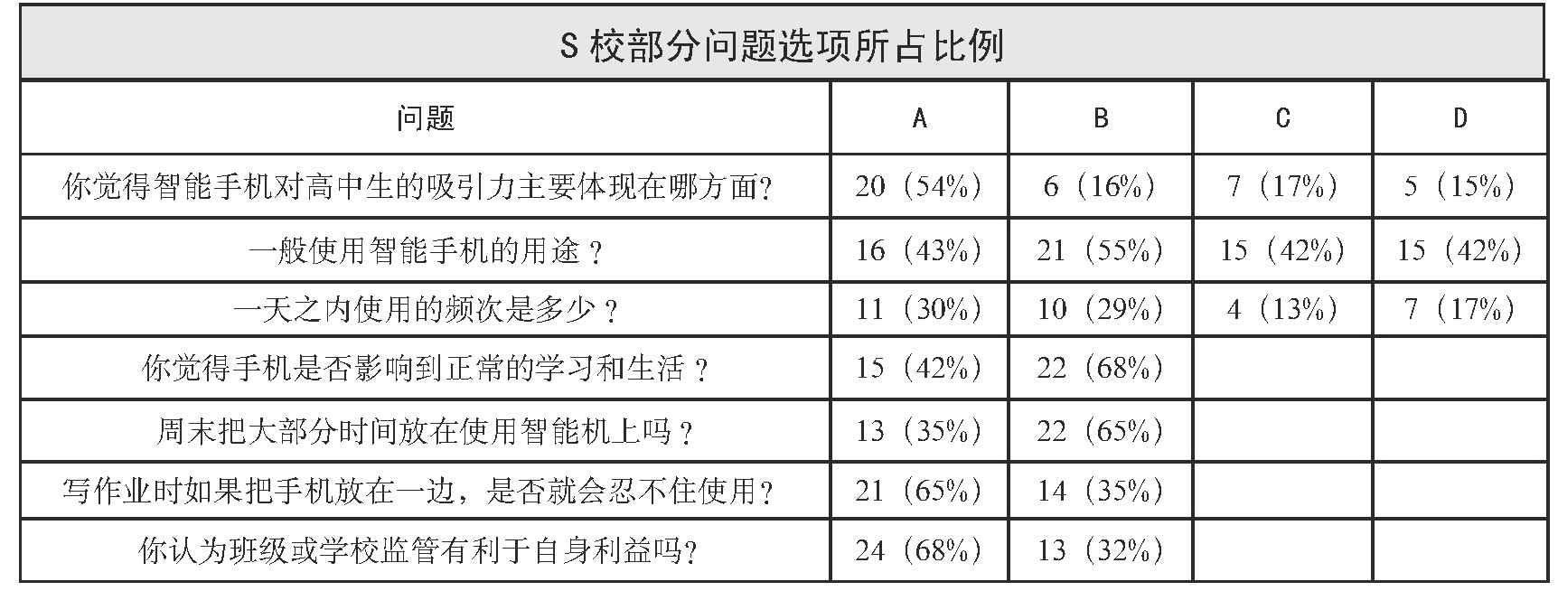 问卷调查一:S校高中生对智能手机使用情况