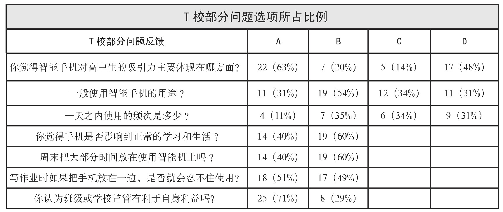 问卷调查二:T校高中生对智能手机使用情况