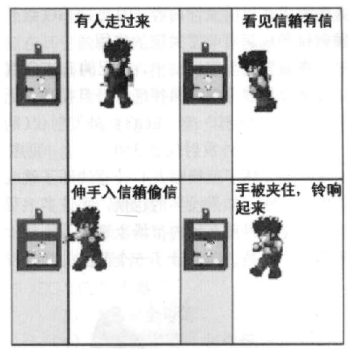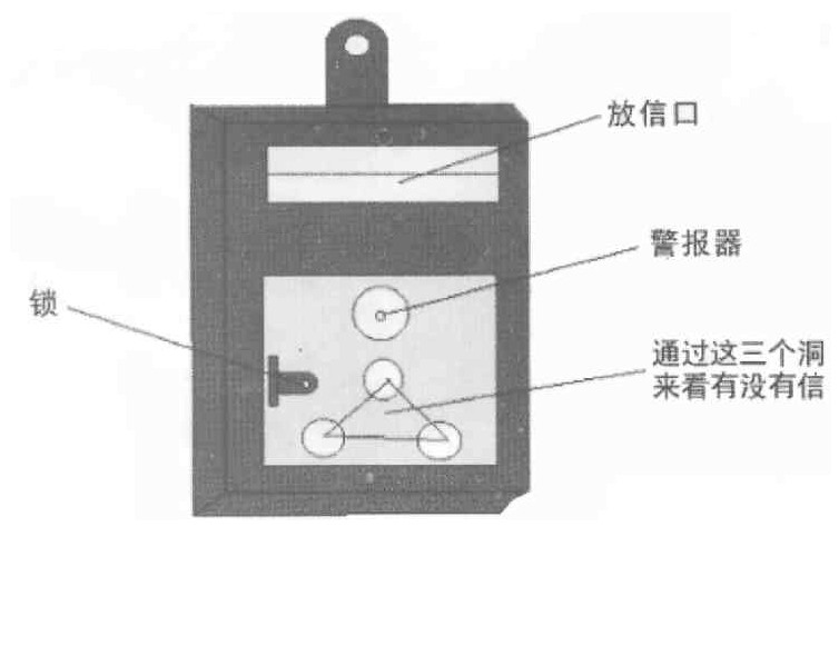 防盗信箱的形状和普通信箱一样,不同的是防盗信箱的放信口内装有活门(如图1所示),只能把信放进去。当有人想伸手进去取信时,活门受压,就会马上关上,装在信箱内的警报器也会因为被活门碰到而发出声响,这样就可以把偷信的人捉住了(如图2所示)。如果是信件的主人,只要用钥匙打开信箱图的2门就可以顺利取出信件。信箱内的警报器以普通电池作为电源。