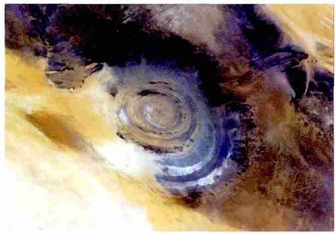 “撒哈拉之眼”位于撒哈拉大沙漠的西南部,直径达到48千米。最初,人们以为是陨石砸坏地面形成的,但周边没有找到相关的矿物证据。由于未发现火成岩堆积的圆顶,也排除了火山的可能。现在,地质学家普遍认为是地表抬升后受到侵蚀的结果。至于为何形成这巨大的圆形,仍然是个谜。