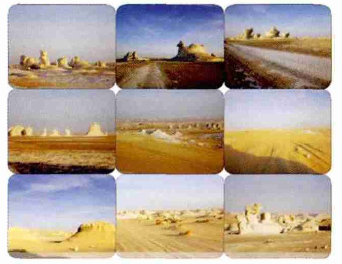 像奶油一样的白色沙子上,屹立着风力“雕刻”的白色岩石,有鸡状石、骆驼块、海豹石、磨菇石、蟋蟀石……真是美不胜收。