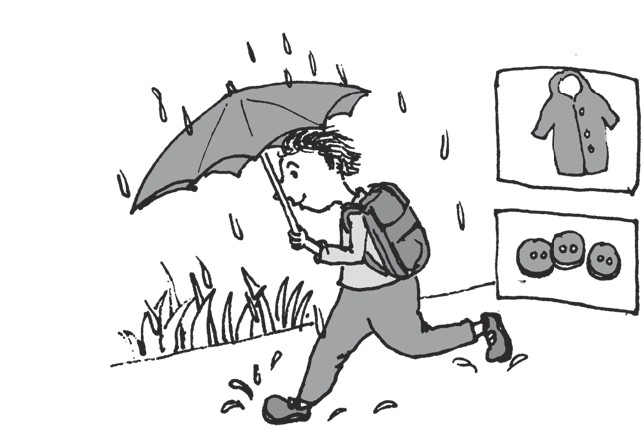 下雨天或大雨后,行人在水淋淋的路上行走或骑车时,鞋跟带起来的泥水溅满了整个裤管,很不雅观。斜飘过来的雨水还容易把裤管淋湿。为了让裤子在雨天也能保持干燥、整洁,我就想出了这个小发明。