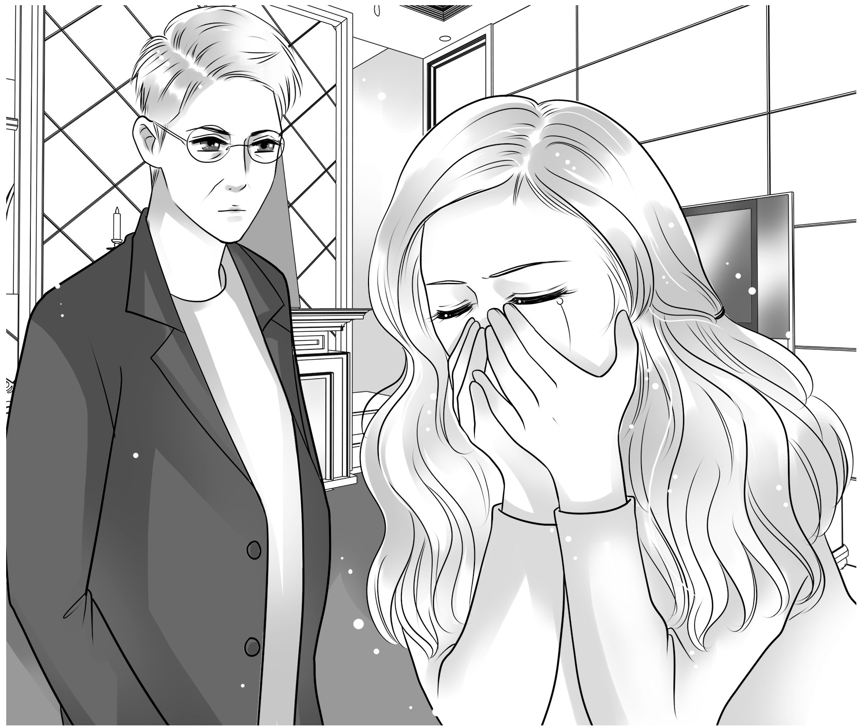 客厅里坐着一个身穿笔挺西装,鼻梁上架着金丝眼镜的中年男子。看到乔乔妈妈从卧室里出来,他从包里掏出了一个黑色笔记本,看上去像是准备记录些什么问题。