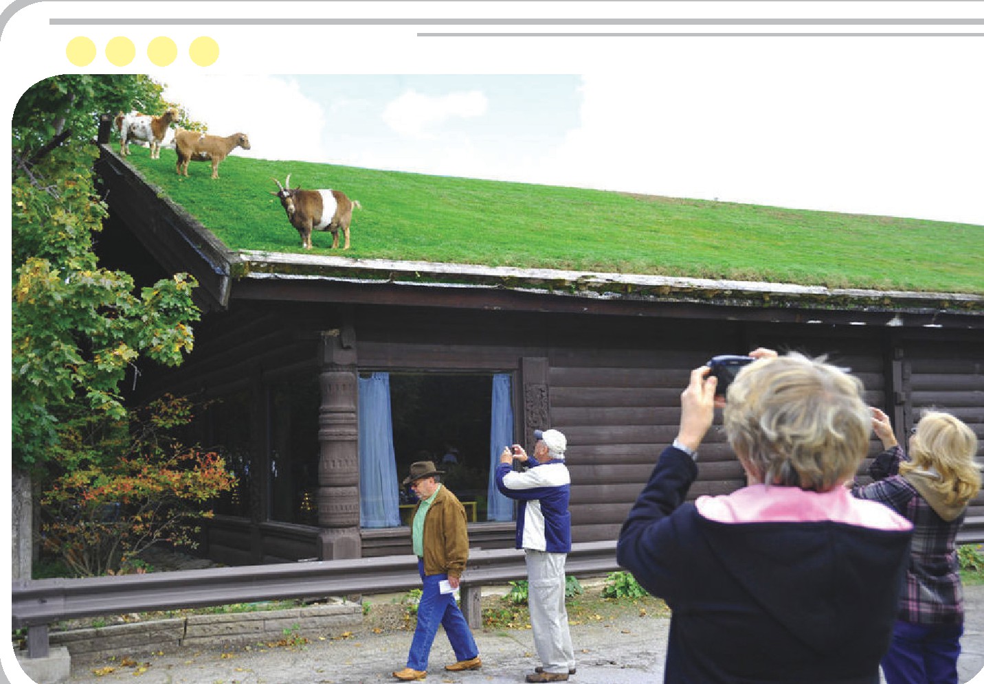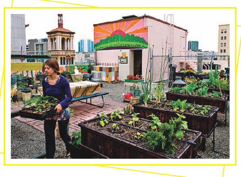 “屋顶农场”是一家熟食店建造的,由于熟食店每天在制作熟食的过程中产生了大量的热量,于是专家们尝试在屋顶建造温室,种植果蔬。屋顶蔬菜不仅有助于隔离热量、保护了屋顶,而且能吸收大量的碳,有效地改善了城市生存环境;另外种植“屋顶蔬菜”积蓄了雨水,减少了城市的排水压力。