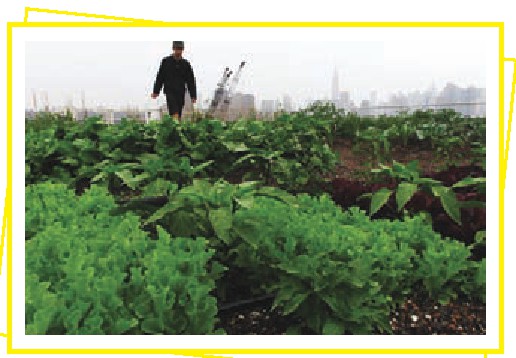 美国纽约的一座废旧仓库的屋顶被改造成了面积约600平方米的“屋顶农场”,屋顶农场上铺撒了泥土、肥料。除了建有蔬菜基地,农场还建有蜂房、鸡舍,把种植与养殖有机结合起来,使种植空间得到了有效利用。