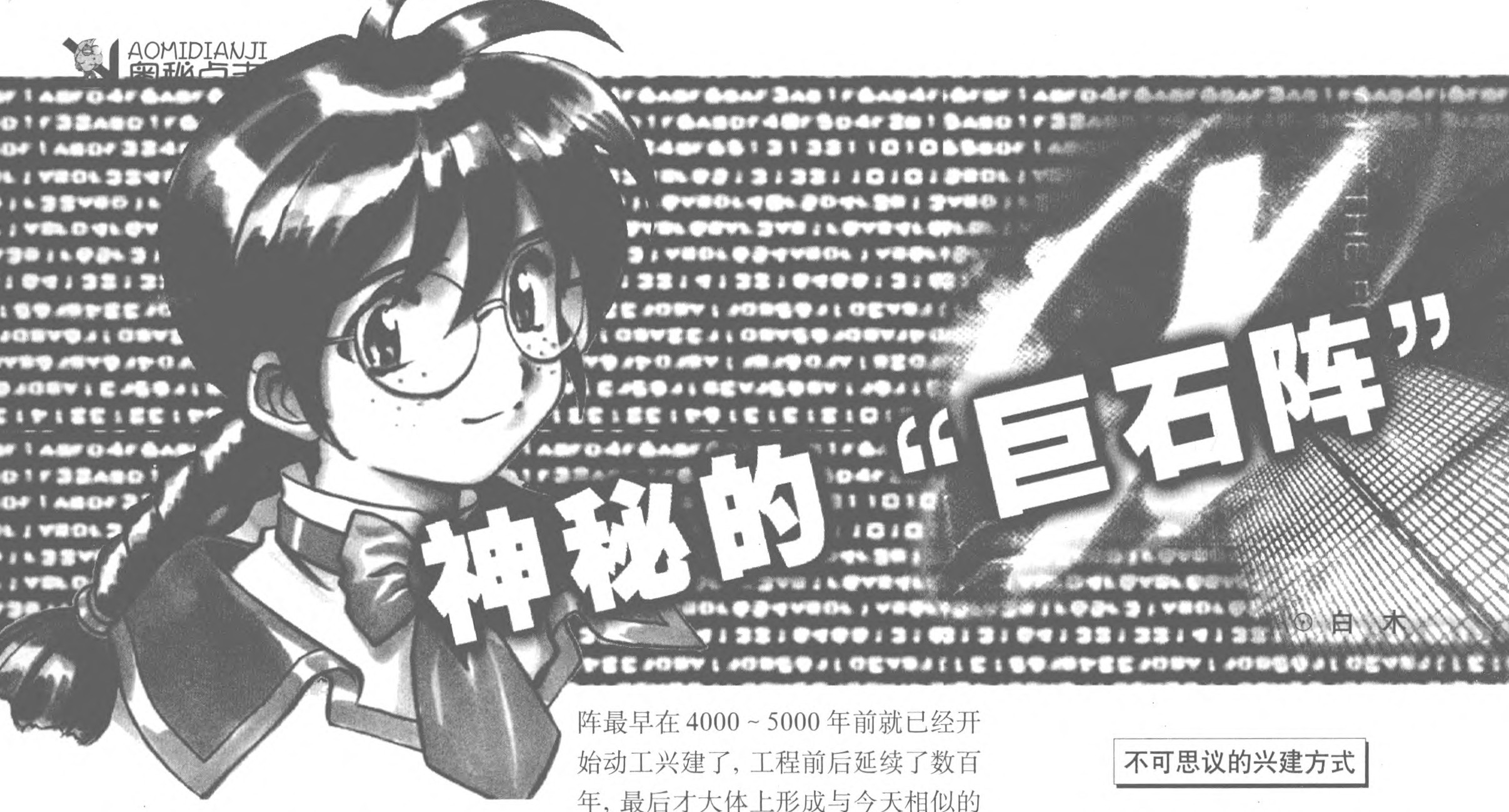 距英国首都伦敦130公里远,有一个叫索尔兹伯里的地方。这里遗留下一个迄今为止仍难解其奥秘的建筑奇迹:几十块巨石形成一个大圆圈,高的达6米,每块巨石重达数十至数百吨。圆形石林已经在这个一马平川的平原上矗立了几千年,但是从来没有人能够确切地知道,当初建造它的目的到底是什么。