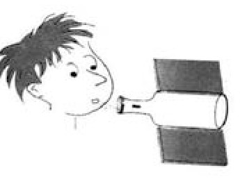 那该怎样做才能让小粉笔头被吹进瓶子里呢?其实很简单,只要把粉笔的其中一端在地上磨尖,然后,让尖的一端朝瓶底,再放回瓶颈的平坦处。好了,现在再吹吹,看会有什么现象发生。