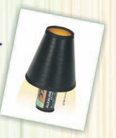 右图是世界上最小的台灯,一节5号电池既用来提供电源,又作基座,据说能亮150个小时,但作用大不大还需要我们自己来体验哦。