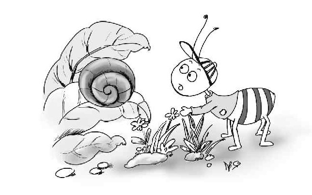 5.(小蜗牛找小蚂蚁玩,小蚂蚁很吃惊的样子)
