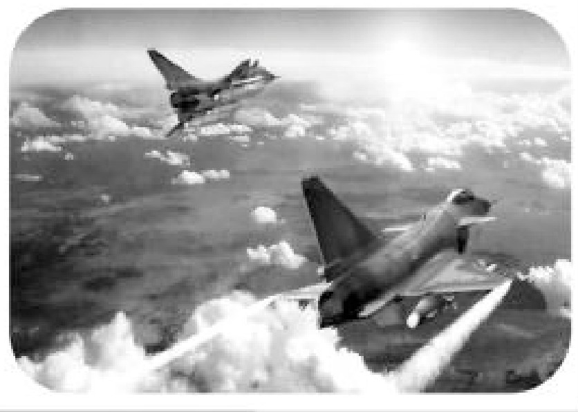 蓝天白云下,我方两架神秘战斗机短距滑跑,同时跃起。天空上,它们时而腾跃、俯冲,像鹰隼般迅猛;时而盘旋、翻滚,似飞燕般灵巧。这时,指挥部通报:“敌”4架第三代战机以密集编队突破我防空阵地。一声令下,两架神秘战斗机风驰电掣直飞截击空域。很快,前方传来捷报:我方两战斗机与“敌”机在长空较量4个回合,均先“敌”发现、先“敌”锁定、先“敌”开火,空战对抗取得全胜战绩……