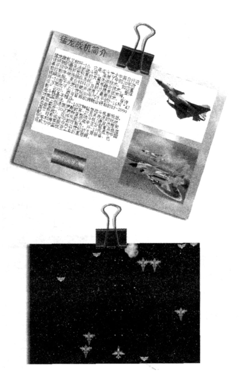 开始界面是猛龙战机的简介和从网上精心搜集来的飞机照片,如图:单击“开始游戏”按钮,进入游戏开始界面,上面有游戏的玩法。按F 1键开始游戏,便可以好好过一把瘾了,左上角有积分,按E S C键退出游戏。
