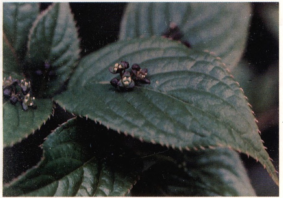 图1 着生在青荚叶叶上的雄花。