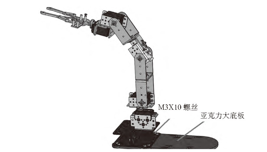 (3)确定伺服电机的数量:控制机械臂前后翻转的伺服电机设为3个,控制机械爪子闭合打开抓取的伺服电机设为1个,控制机械爪子翻转的伺服电机1个。为了增加灵活性及取物距离,可以增加电机数量。
