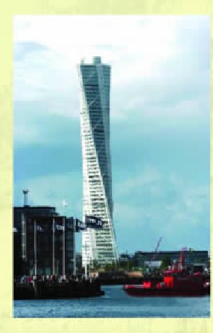 瑞典马尔默新建成的摩天大厦十分前卫。这座大厦高189米,共有9个区层,每区层有5层,每区层都旋转少许,使整栋大厦共旋转90度,这样的设计使大厦的每个房间都能得到充足的阳光。大厦由西班牙建筑师卡拉特拉瓦设计。卡拉特拉瓦表示,设计这座大厦的灵感来自一件身体扭动的人体雕塑。