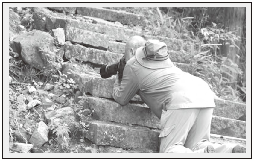 日子在观花赏蝶中一天天过去,未来的路还有很长,我会一直观察和学习下去。用一张我最喜欢、最能给我力量的照片来结束这次的观察之旅吧。已经74岁高龄的楼爷爷,因为要拍自己心爱的蝴蝶,又怕打扰到它,于是轻轻地趴下拍照。我想这就是对蝴蝶、对大自然的真爱吧!