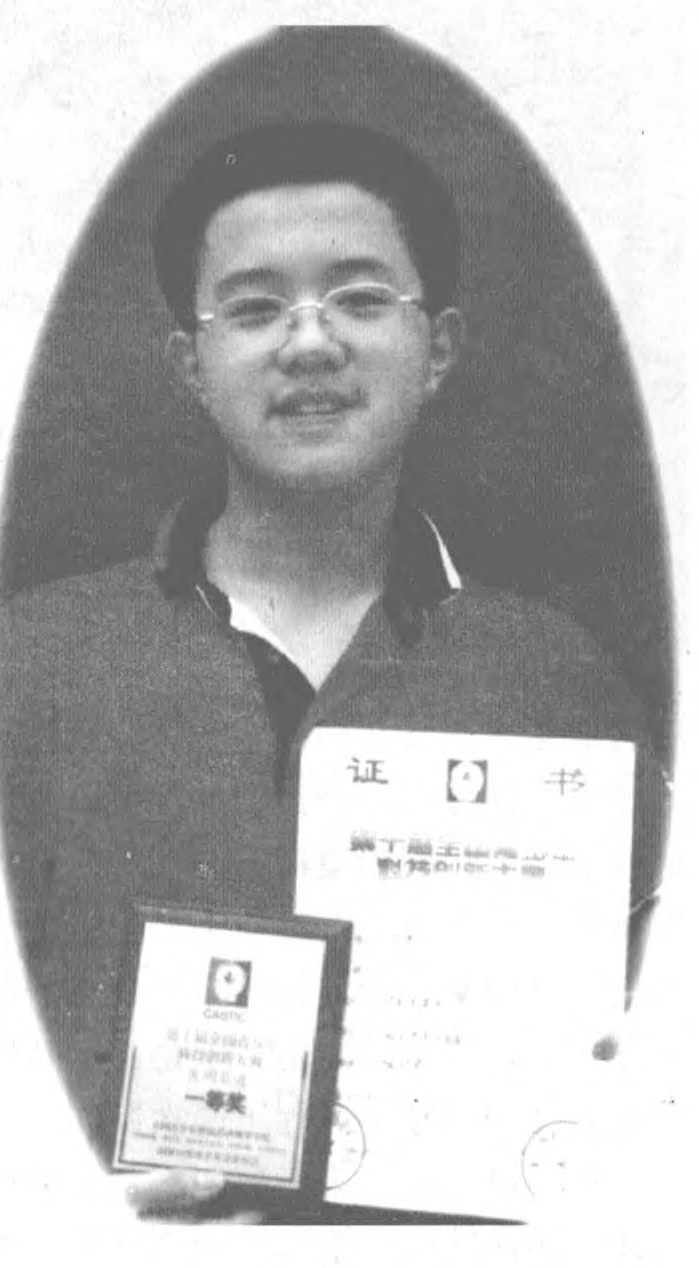 但他决不是人们想像当中的那种死读书的人,除了完成规定的课程和作业外,他还挤时间阅读大量的课外读物,特别是科技方面的书。在父母给他的房间里,书桌、书柜里整整齐齐摆了 200多本书,这些书大多数与科技有关,如《青少年科技发明指南》《小学生自然百科》《中学科技》《奥秘》等。他每本书都认真地看了,不懂的地方就问爸爸妈妈。尤其可贵的是,他不仅勤于读书,更是勤于动手。他从小就喜欢用海模、车模、航模的材料做成轮船、汽车、飞机等模型。还是小学三年级时,他第一次参加岳阳市青少年科技器材服务部主办的现场车模比赛,就拿了一等奖。读初一时,学校开设了创造技法课,他参加了科技活动小组,经过科学系统的训练,他的动手能力和创新思维大大地提高了。他的书柜旁边摆放着一个简易工具箱,科学实验所需的一般工具一应俱全。