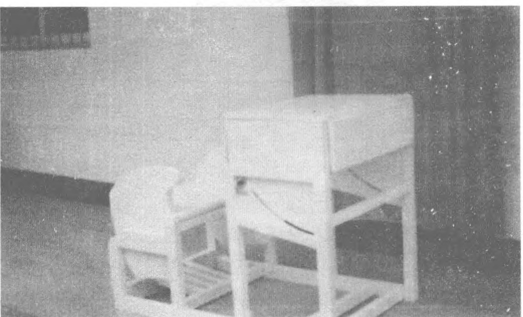 一次,学校在大会议室召开学生大会,梁晋阳看到会议室的椅面、桌面可以翻动变形,一下子找到了灵感。他马上想到椅面既然可以横向中轴翻动,应该也可以横向前后轴翻动。桌斗桌面可设计成带轴翻转的形式。为了固定翻转后的椅面,他又在两只前腿上分别增加支撑点。这样,一个最初的设计方案便形成了。但是因为桌椅是分立件,位置容易变动,人躺上去不安全。张老师启发他,以前有一种连体课桌椅,它的结构方式在这里可以借用。于是,梁晋阳在张老师的指导下进行了两次制作、三次改进,设计出了第三模型,将课桌椅设计成连体结构,增加了活动横杆、枕头、枕靠板、座椅双面扶手,降低了支撑椅面的椅架、横梁高度。这样一来,桌凳变躺椅既方便又舒适,而且桌椅外形比较美观。