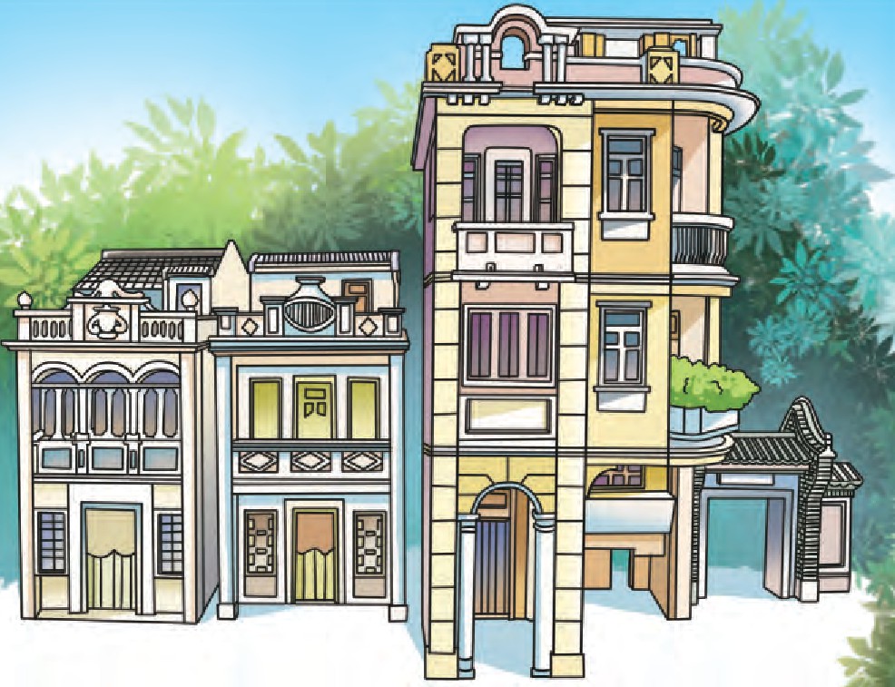 “骑楼真是人性化十足啊,可这样的房子在哪儿能看到呢?”小粗心自言自语地说。