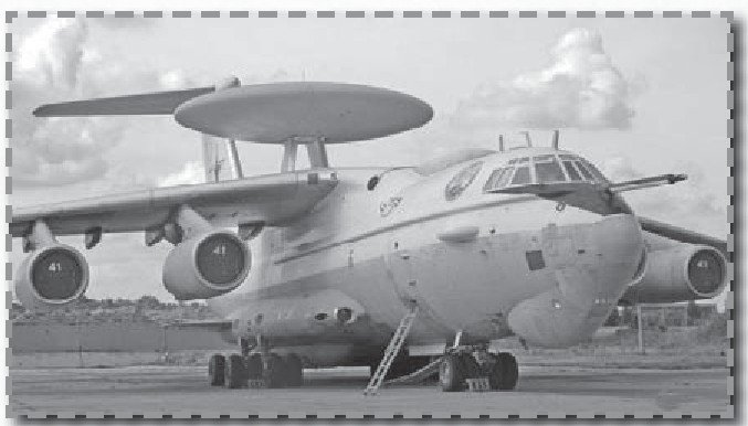 俄罗斯预警机的发展要滞后于美国,其A-50与E-3一样,也是一种大型预警机,于20世纪80年代中期服役。它以伊尔-76大型运输机为平台,安装了包括脉冲多普勒雷达等设备在内的“熊蜂”大功率电子系统。由于电子技术水平落后于美国,A-50的探测距离和跟踪目标数量要逊于E-3,但在有地面杂波干扰下识别目标的能力上要优于后者。