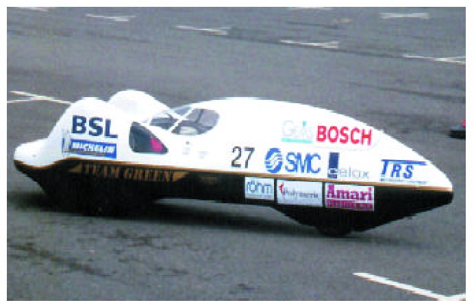 最近,英国一位发明家开发出世界上最省油的汽车,4.5升的汽油居然可以跑12 870米,相当于每升汽油跑2 860千米。发明这辆汽车的发明家是英国巴斯大学机械工程系的技术员安迪·格林,今年45岁。格林认为,省油的诀窍在于减轻汽车的重量。格林一直致力于发明省油汽车,他为研制这辆车用了两年时间,花费了2 000英镑。新开发的这辆汽车有3个轮子,长3.1米,宽只有0.6米,采用单汽缸四冲程发动机,汽缸的容量只有35立方厘米。由于所有的装置都尽可能小一些,因此该车也特别轻,只有3 0千克。这辆汽车的底盘很低,外形是流线型,设计非常符合节能的原理。这辆车的外形看上去特别奇特,有些像科幻小说中未来的交通工具。
