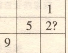 进而得知,1应放在如图8所示的位置,从而9放在第三行中间方格内。这时2仍有3种可能的位置,如图8、图9、图10。将2放在图8所示的位置上,这时右上角必须放置12。而如果将2放在如图9所示的位置上,则无法放置3,因此图10就是唯一的可能性。这样继续下去就得到最后的解答如图2所示。