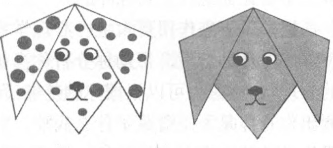 ④如图画上狗的脸,用小塑料球粘在上面做眼睛,这样看起来狗就很可爱。