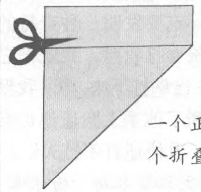 ②如图,把下面那个小长方形剪下,形成一个正方形(这时是一个折叠的三角形)。