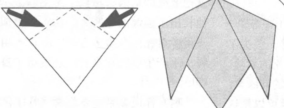 ⑤在这个折叠的三角形上,如图折叠两个小的三角形(做成狗的耳朵)。