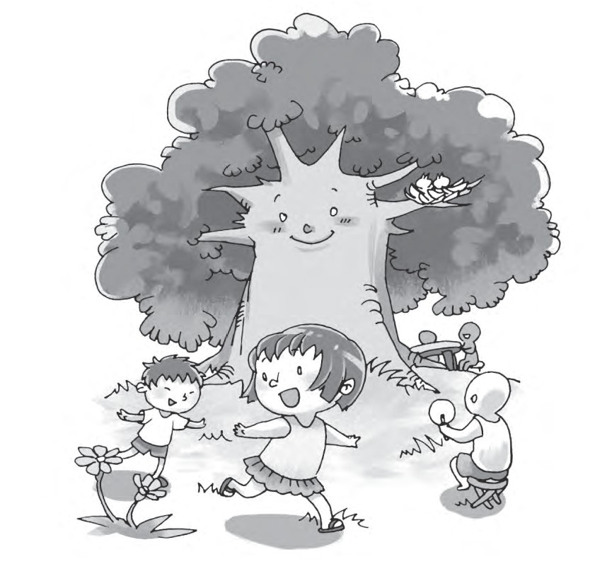 夏天,我的叶子变得碧绿而浓密,就像一把撑开的绿伞。大人喜欢在我的脚下摆上桌凳乘凉、聊天、品茶、下棋;孩子们喜欢在树下玩耍、嬉戏;而小动物们最喜欢在下雨天到我的脚下躲雨。每次,我都高兴地张开怀抱,欢迎他们的随时到来。