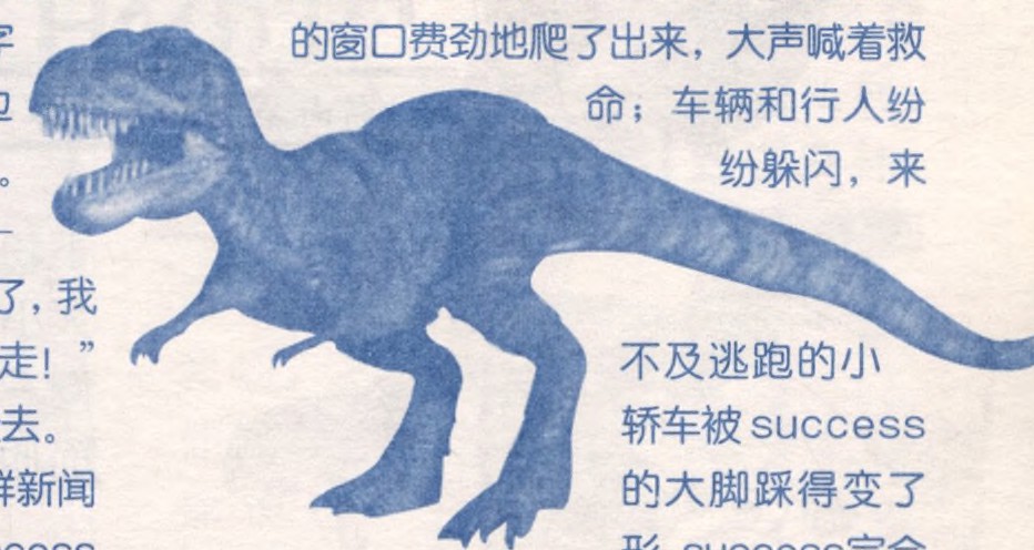 我们走到马路正中的时候,一群新闻记者冲了过来,“噼哩啪啦”地给success拍照。success不喜欢拍照,特别害怕闪光灯的强光。在6500万年前,一颗巨大的行星与地球相撞,这突如其来的劫难引起了海啸以及火山爆发,导致环境恶化,恐龙灭亡。行星与地球相撞时天空中的强光在即将死亡的恐龙的记忆里烙下了不可抹去的印记。success是克隆恐龙,基因里仍然保存着死前的记忆,所以对强光仍有着十分恐惧的心理。