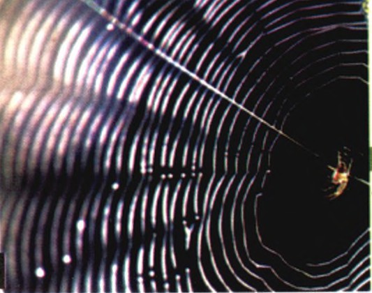 蛛网的粘滞性相当强,小昆虫一旦触及就插翅难逃。不过蛛网粘不住蜘蛛自己,因为蜘蛛身上有一层润滑剂。蛛网圆心的那一小块地方是蜘蛛的休息室,不具粘性。蜘蛛丝是一种骨蛋白,在体内为液体,排出体外遇到空气立即硬化为丝。最细的蛛丝直径只有百万分之一厘米。一条能环绕地球一周的蛛丝,只有168克重。在人们心目中,蛛丝是不堪一击的.其实不然,和蛛丝同样粗细的钢丝都没有蛛丝结实。