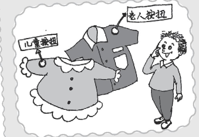 现在的衣服款式很多,可是功能太少了。我想发明一种特别的衣服,衣服上有三个按钮: