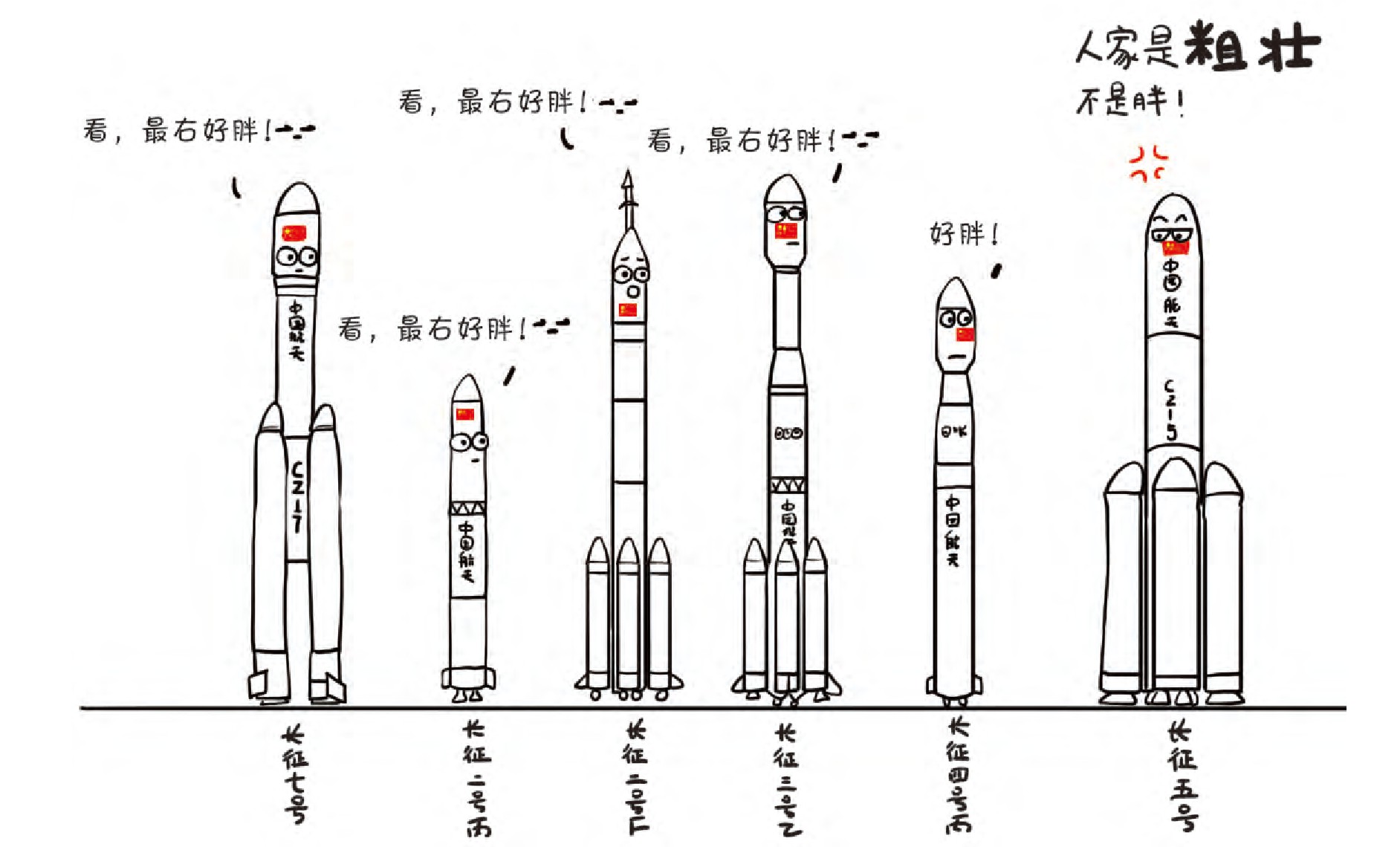 相信看了“胖五”的个人档案后,大家对它的外号应该没有异议了吧!毕竟跟它一比,最大腰身直径3.35米的我国其他现役运载火箭都可以称得上苗条了。