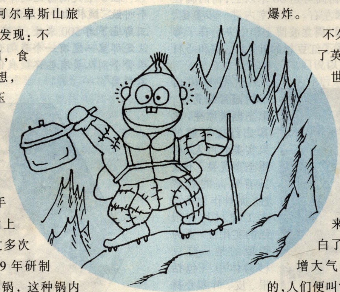 这得从高压锅的诞生说起。300多年前的一天,法国医生、物理学家帕平带领一队人到风景秀丽的阿尔卑斯山旅行,在山上野餐时发现:不论水沸腾多长时间,食物都煮不熟。帕平想,是不是高山上气压低引起水的沸点低造成的?测量结果表明,帕平的想法是正确的。于是,帕平开始着手研制一种能在高山上做熟饭的锅,经过多次试验,终于在1679年研制成功了一种密封的锅,这种锅内的水蒸气无法散出,加热后,锅内气压随水蒸气的增多而增大,水沸腾的温度可以达到120℃以上。帕平用这种锅焖肉,连骨头都炖烂了,而且蒸煮时间大大缩短,仅为使用一般的锅所用时间的四分之一,因此,人们给它起个名字叫“烂肉锅”。此外,帕平还在锅上设计了安全阀,当锅内气压达到一定限度时,再产生的多余水蒸气便会冲开安全阀跑出锅外,避免锅内气压超过极限发生爆炸。