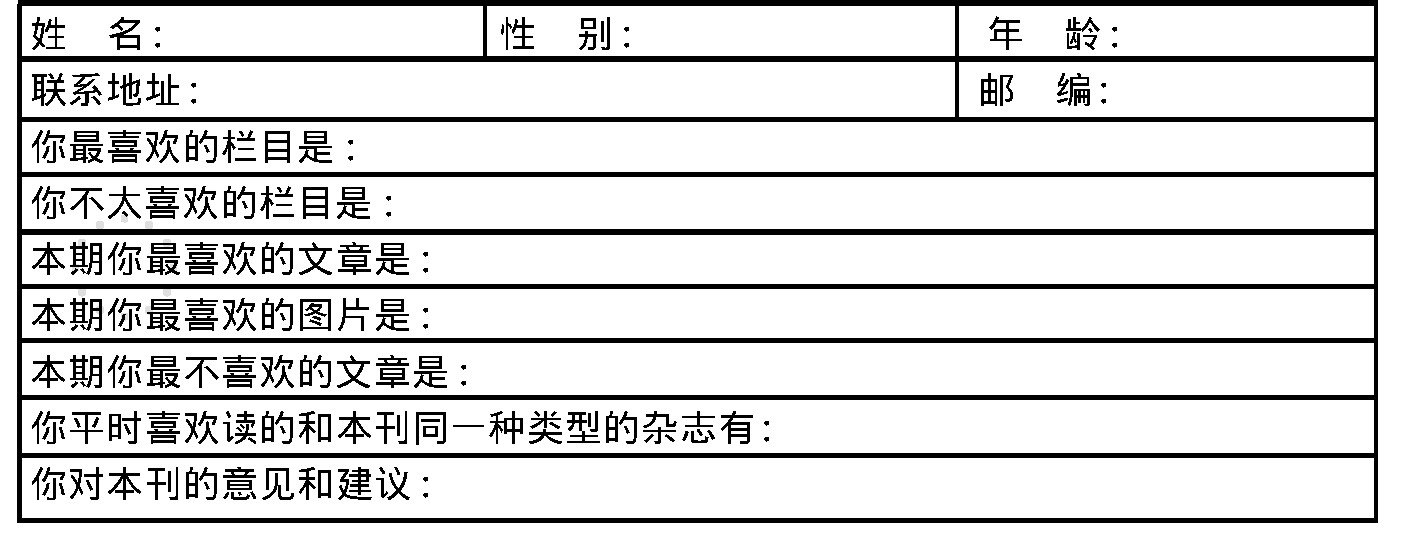请将你的回答写在表格里然后寄给我们,我们的地址是: