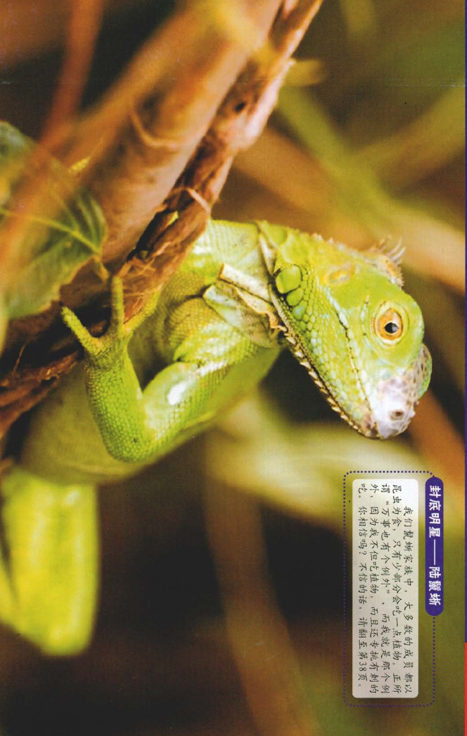 我们鬣蜥家族中,大多数的成员都以昆虫为食,只有少部分会吃一点植物。正所谓“万事也有个例外”,而我就是那个例外,因为我不但吃植物,而且还专挑有刺的吃。你相信吗?不信的话,请翻至第38页。
