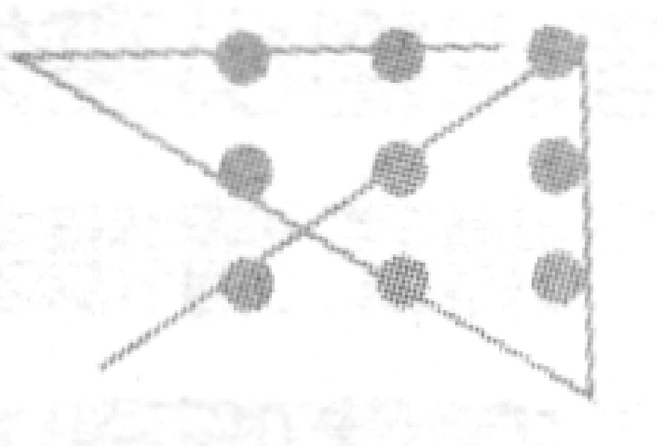 如图,一笔画出4根直线把9个点连接起来。你能做到吗?